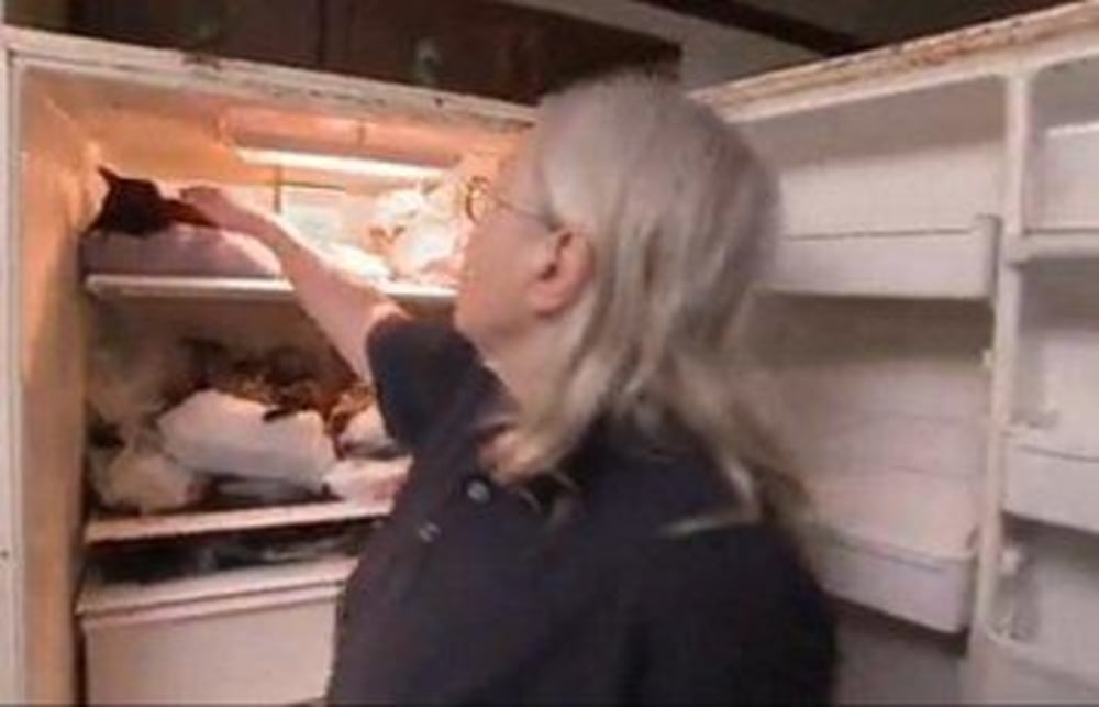 Terry had hoped to have them all cremated, but finances didn't allow for that, so over time, she "saved" them all in the appliance, which wasn't up to the task of preserving the cats. In fact, once the cleanup was underway, the "Hoarders" crew discovered that many of the cats had liquefied.