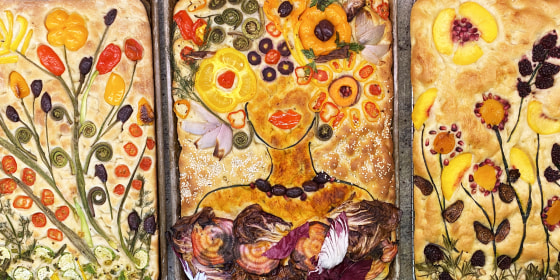 Chewy and olive oil-enriched focaccia bread is the perfect edible art canvas for a colorful design of your own making. Garden Focaccia (also known as "focaccia gardens," "art focaccia" and "Van Gogh focaccia") are thought to have been popularized by Massachusetts home baker Terri Culletto, who first shared the colorful creations on her Instagram.