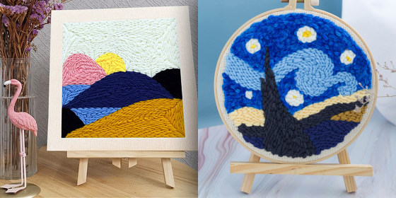 It's a starry, serene night with this punch needle kit. This three-piece set comes with canvas, a punch needle and all of the yarn you'll need to create this tranquil scene.