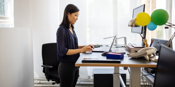 "I find that you are much more likely to use your standing desk if it is electric," Jaffe says. "Even better, there are Bluetooth options where the height can be adjusted through an app. You can also set reminders and keep a schedule through the app."
