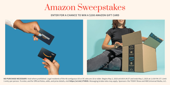 What would you do with an extra two hundred bucks in your pocket? Perhaps you’d use the extra cash to cover your grocery bill for the week. Or, maybe you’d want to splurge on a few new pairs of shoes this spring. There’s also the option to treat yourself to one big-ticket tech item like a smart TV. But no matter what kind of shopping spree you have in mind, you can always find what you’re looking for on Amazon — which is why we’re giving one lucky TODAY reader the chance to win a $200 gift card.
