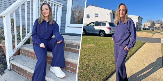 I do think this would make an easy and chic outfit to wear out of the house, too, but that largely depends on the color, in my opinion. I chose the navy blue shade, which is lovely, but it's also giving me Reuben Tishkoff of "Ocean's Eleven." If you don't know that reference (I implore you to watch — it's a classic comedy), then maybe just picture your grandfather in a casino with a cigar in his hand. And while that is a relaxed vibe I can get on board with, for my next purchase I'll likely go for a more subtle-yet-colorful hue for a more feminine look. I will also try an XS to achieve a more fitted look that I'd normally choose when going out.