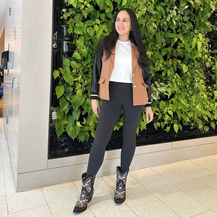Gianna Nucci, a Maryland-based fashion stylist, previously told Shop TODAY that she prefers wearing knee-high boots “with leggings, a faux leather or thick ponte knit fabric and a chunky sweater.”