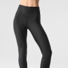 I tested the Alo Yoga leggings for a full 8-hour shift and a dance class. The material feels compressive and tight on the first try, but the band tends to roll down if you do complicated movements. The design has a sculpting silhouette and covers my belly completely. However, I did experience some discomfort while dancing, as the band rolled down a bit.