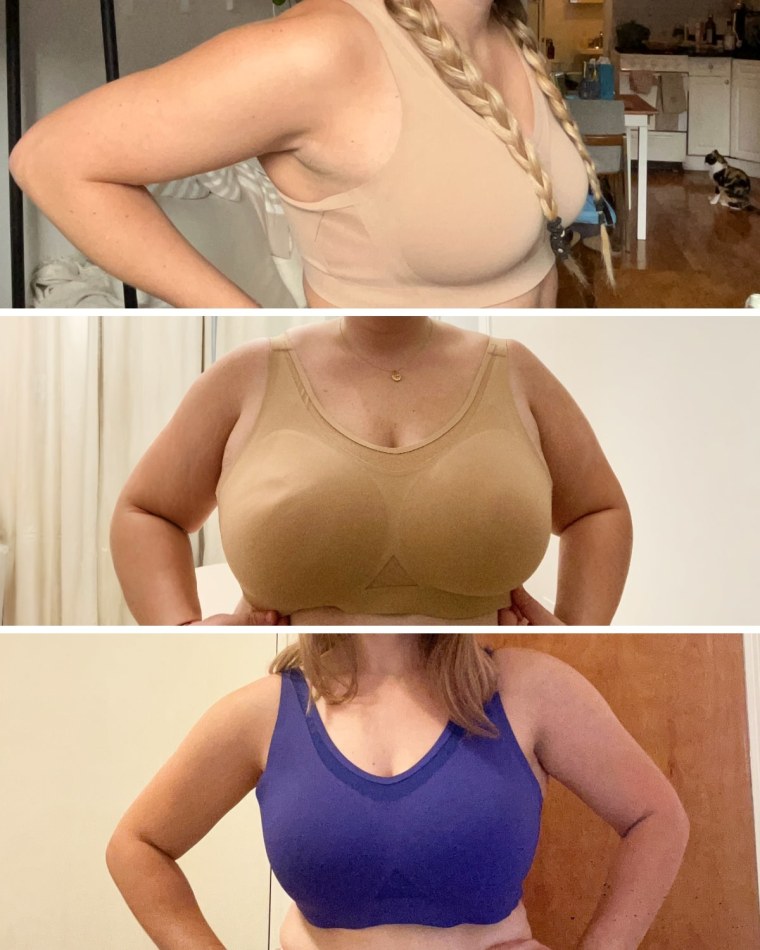 Hoeger, however, mentions that she had trouble getting it to fit correctly and struggled with the bottom band hitting too high on her chest.