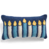 Ready to deck the halls, Hanukkah style? This decorative pillow features a menorah with blue and white candles on a navy blue background, and would look simply dashing on your couch.