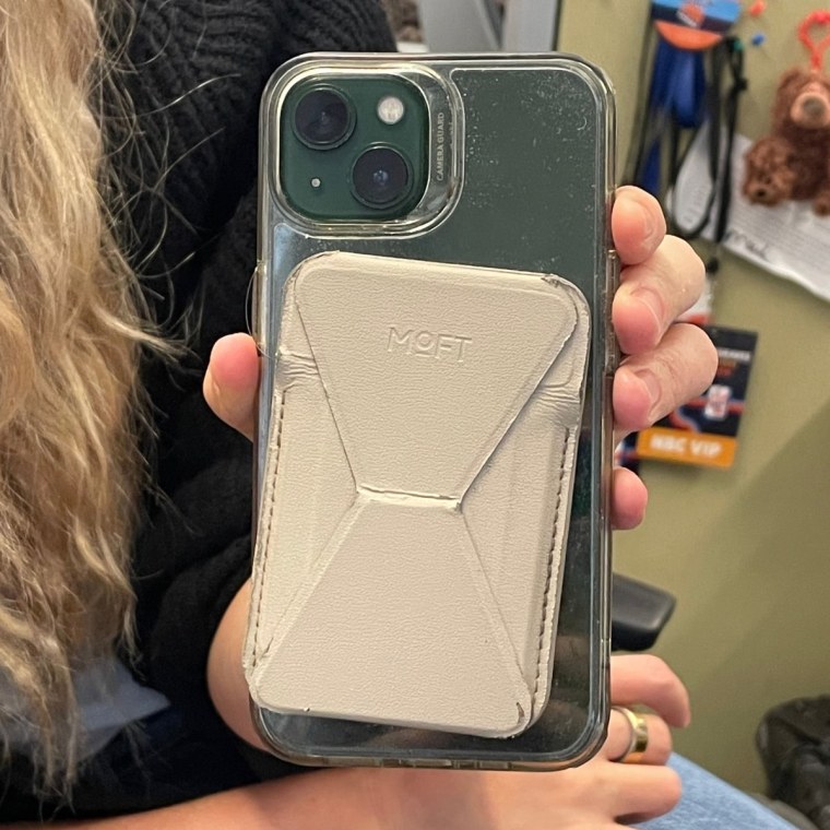 "This is the card wallet I use to hold my essential cards (transportation, ID, debit, and 1 credit card)," says associate editor Kamari Stewart. "I love that it’s MagSafe so I can switch it between whatever case I have on my phone and it keeps everything really secure, even if I have just one thing in there," she adds.