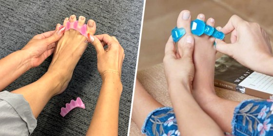 Both Splichal and Lee recommend YogaToe's unique-looking spacers. While they cannot be worn while walking around, Splichal says that they "do offer a good stretch to the toes." They are a top option among shoppers, with more than 8,800 five-star ratings on Amazon.