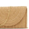 Dimensions: 11” x 1” x 6.5” | Lined?: Yes | Style: Clutch | Closure: Snap | Material: Raffia