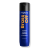 As far as blue shampoos go, Korab recommends Brass Off by Matrix, which only takes a few minutes to start working in the shower (three to five, to be exact). The blue- and violet-pigmented formula is designed specifically for brunettes going brighter, but it can also be used on natural, non-dyed hair.