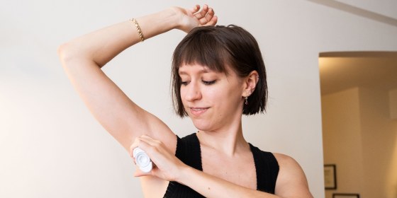 "Applying too much can leave your pits feeling a little sticky and can transfer onto your clothing," she says. "A small twist should give you just enough product. I also recommend that you let your pits dry for a minute or so before putting on clothes to avoid any transfer.