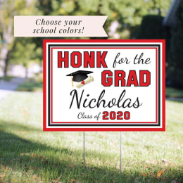 The shop's "Honk for the Grad" design is one of the most popular options since it encourages drivers to join in on the celebration.