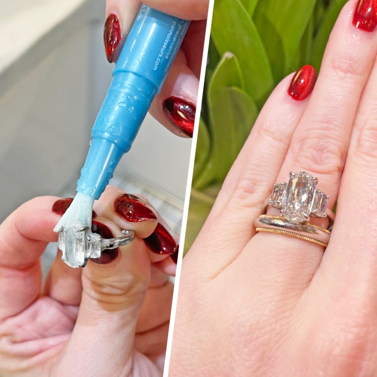 Shinery's jewelry cleaner is loved by many members of the Shop TODAY team, and we bet you will, too (Oprah even had it in her 2023 list of favorite things). One Shop TODAY writer, Emily Orofino, reviewed the wash and put it to use on her ring and earrings. To see the results, the solution is suggested to be applied like you would hand soap (you can also use a cotton pad). As you scrub your hands, your jewelry will be cleansed, too.