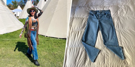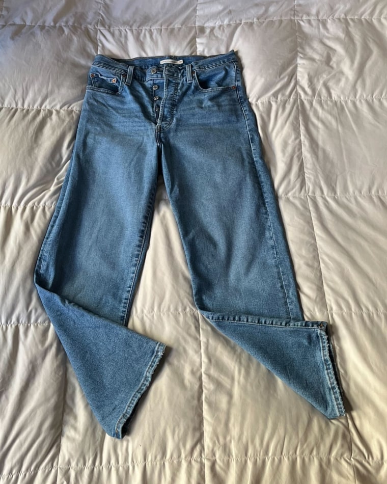 If you want something less flare-designed but still flattering, opt for these jeans. Begley recommends these "because it’s a vintage cotton jean with a super high rise that sits at the natural waist, similar style to the 501 ‘90s Levi." They have a bit more stretch which makes them easier to expand, adding comfort and an effortless style.