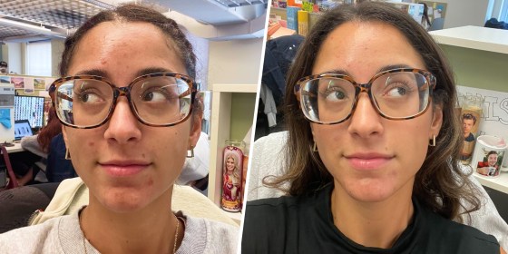 When my breakout hit over the summer, it was hot, humid, and I was working out seven days a week. Factor that in with the stress I was experiencing, and it was no wonder my skin looked like the first photo: