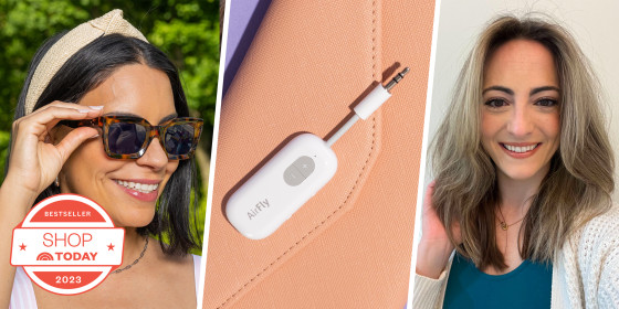 As a winner in our Travel Awards, this neat gadget is Shop TODAY-approved for allowing you to use your favorite bluetooth headphones to listen to in-flight entertainment. On the plane, it plugs into the audio jack on the screen in front of you and transmits the sound directly to your earbuds or headphones — no wires required. It can also be used in cars, with a speaker instead of headphones and in so many more useful ways.