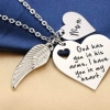Available in Mom and Dad varieties (in addition to other family members), this memorial necklace has two heart chains, with one that reads "God has you in his arms, I have you in my heart" and another that says "Mom" or "Dad." It also has an angel wing charm on the side.