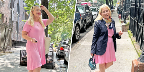A simple way to change the dress’ style is to belt it. A narrow belt and a pair of kitten heels elevate your fit. Try the dress with a wide belt and chunky loafers or a wedge heel for a more contemporary look. One day, I wore it with a cropped vest and sneakers. Another day, I tried it with leggings, belted the dress, made it look like a tunic, and wore it with flats.