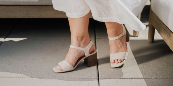 The strappy design is great if you need modest support with a dash of panache. Another recommendation from Lopez, these feature a shimmery material that exudes sophistication, and they have a squared heel to help you withstand standing moments and longer walks.