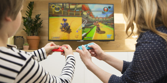 You can connect the two controllers together and play your games on the TV, which is best for family-friendly gaming. The main device also includes a kickstand on the back, which allows you to play the Switch in "tabletop mode" with the Joy-Cons separated from the Switch.