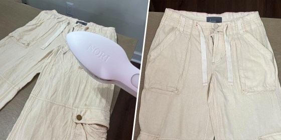 I didn't make things easy for my first attempt, choosing a pair of rumpled linen cargo pants with several pockets along each leg. The Nori only took about two minutes to heat up, so I was able to get started right away.