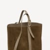 If you want a bigger tote for work or just to carry more, this bucket tote is made with a suede-looking fabric and has a strap that mimics the look of a belt. How chic!