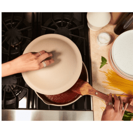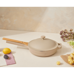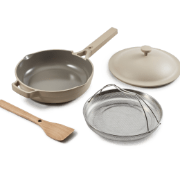 The brand says the Always Pan can replace the need for a non-stick pan, fry pan, sauté pan, steamer, skillet, saucier or saucepan in your kitchen, and also includes a built-in spatula and spoon rest. People seem to agree as it currently has more than 19,000 reviews on the Our Place website, with many fans praising its space-saving qualities.