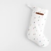 For a minimalistic mantle, opt for this stocking that utilizes white space as snow and has skiers as the main focus. A brown leather tag can be customized with your choice of six different fonts to differentiate amongst the family.