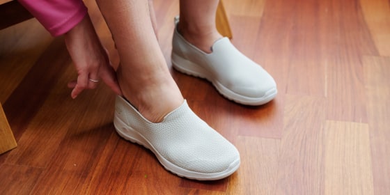 She says that these types of shoes are helpful for the short term if you’re swollen after your activity, assuming that the swelling isn’t due to injury. They also include adjustable straps, which Reid says are “helpful for people who do swell after activity.”