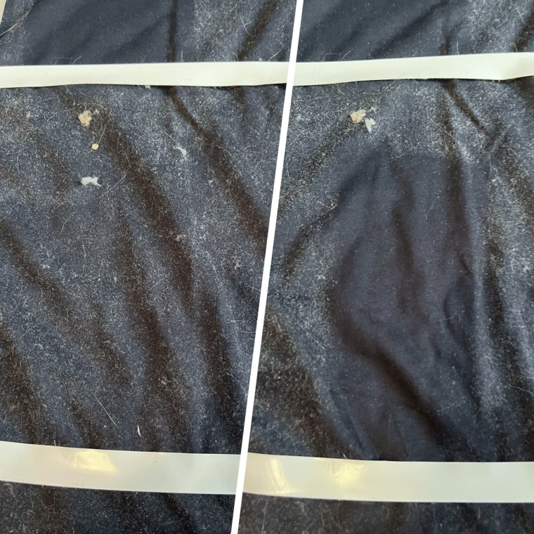 Former Shop TODAY editor Amanda Fama put eight lint rollers to the test against cat hair on two surfaces: cotton T-shirts and her couch. There were two cotton T-shirts: one covered in cat hair (after her furry friend rolled all over it) and one covered in dryer lint. The couch was also covered in cat hair.