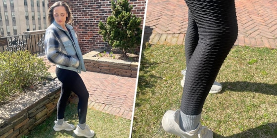 As a commerce writer, I've come to own quite a few leggings from various brands, and I have to admit that these feel just as comfortable as my most expensive pairs. The material is thick, which lends to its shaping abilities since they're able to glide over any "problem areas" instead of enhancing them. They also offer the perfect amount of spandex which keeps them extra stretchy. And it could be my imagination, but I truly believe the honeycomb pattern adds a tiny bit of cushioning.