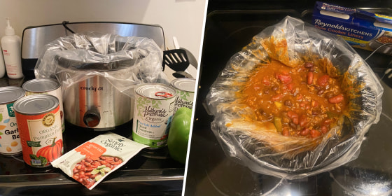 So when I was introduced to these slow cooker liners — which say cleanup takes eight seconds or less — I was excited to test that claim. To do so, I broke out all the ingredients for my favorite pumpkin chili.