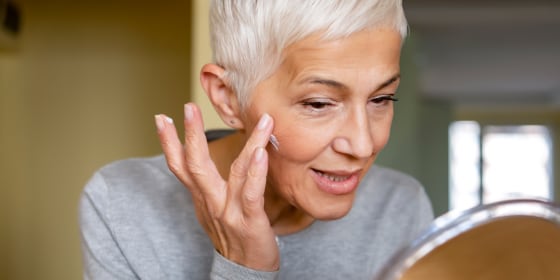 With so many SPF formulas in the market, choosing the right one for your mature skin can be tricky. According to board-certified dermatologist Dr. Doris Day, you should use sunscreen with a high SPF content (like SPF 50 or higher) that contains antioxidants, vitamin C or vitamin E to give you that added protection.