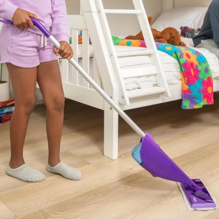 The Swiffer WetJet is a classic cleaning tool for a reason. With it, you can easily get into tight nooks and crannies without the hassle of a traditional mop and bucket. To assemble, just connect the handle, insert the batteries, load the tool with corresponding cleaning solution, add a fresh pad and go! It's safe to use on wood, laminate and tile, according to the brand.