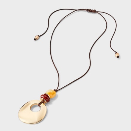 Universal Thread Semi-Precious Quartz Cord Pull Adjustable Pendant Necklace