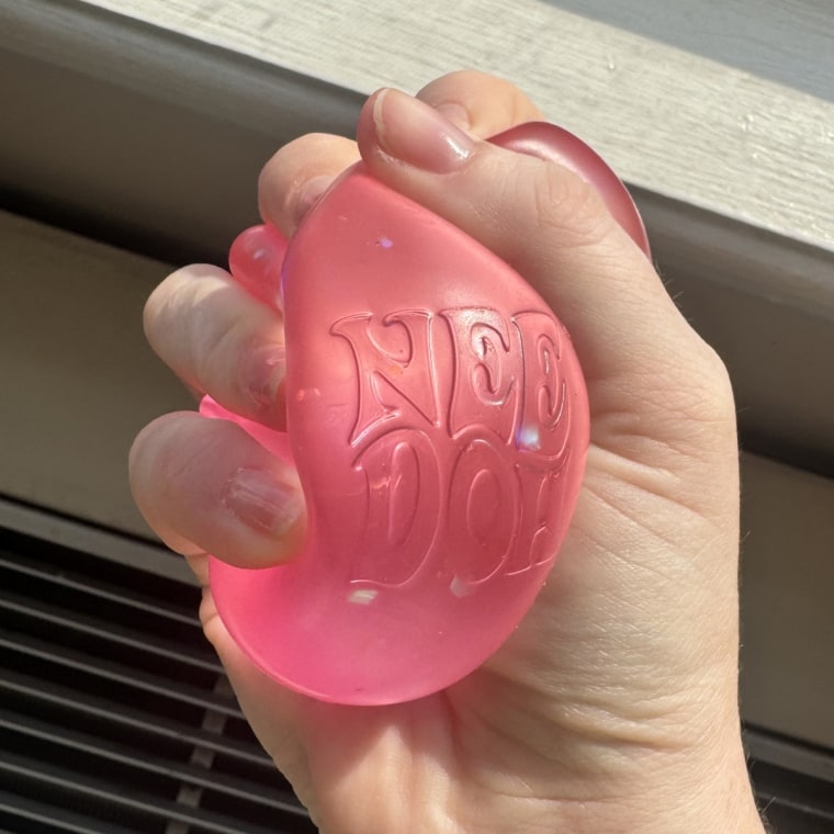 NeeDohs are a range of colorful, squishy collectibles created by the toy company, Schylling. The original NeeDoh is the Groovy Glob, a squeezable circle that's reminiscent of a stress ball. Each one is designed to fit right in the palm of your hand, and they're filled with a non-toxic, dough-like compound that returns to its original shape, no matter how many times you squeeze it, the brand says.