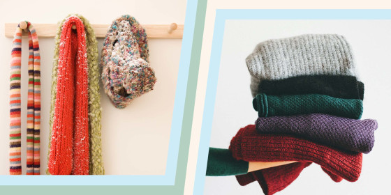 But how exactly do you do that? Easy! Use over-the-door hooks and racks, according to Love. This is especially helpful for organizing chunky or bulky hats and scarves in a way that allows you to see all of your pieces. Thinner scarves like cashmere are a bit easier to store, she noted. For those, she says you can neatly fold them and put them into regular organizational bins.