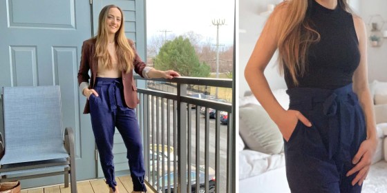 There's a stylish component that makes these perfect for happy hours, or even more formal gatherings held outside of the office. I'm obsessed with the self-tie belt, which not only looks super trendy, thanks to a ruffled front trim, but also flatters my waist and gives a slimming effect. I like to show this feature off with a tight tank tucked in and a blazer for a more professional look. And if the belt doesn't suit your style, it's completely removable.
