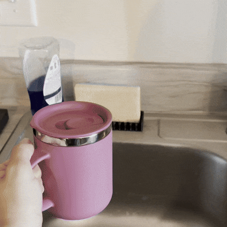 Both mugs have a lid with rubber seals to easily slide on and fit securely. They each also have a slider feature that opens to reveal a mouth opening for easy sipping. I tipped each mug 45 degrees as well as fully upside down to test if any water would spill through the sliders or sealants. Then, I shook them a bit to see if the lids would come loose at all.